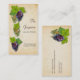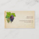 A grapevine with four clusters of wine grapes align along the left side of this business card. The grapevine snakes behind the grapes against a parchment background. A great card for a wine bar, wine shop, vineyard or a vintner. Available with matching products.