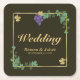 Grape Vines with Gold Frame Wedding Paper Coaster