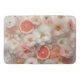 Delicate blossoms and sliced grapefruits are artfully arranged on a soft, light pink background with floating pearls