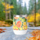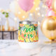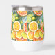 A watercolor ai illustration pattern of lemons, limes, oranges and grapefruits. Juicy citrus in coral, yellow and lime green personalised tumbler.