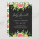 Invite guests to your event with this citrus theme baby sprinkle invitation. It features watercolor illustrations of grapefruits, clementines, floral blossoms and greenery on faux chalkboard background. This citrus invitation will be perfect for citrus theme and summer baby sprinkles. Personalise by adding your event details.