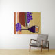 Tapestry in a modern, Boho style, minimalist illustration of grapes in a maroon bowl, with a glass of wine, on a striped tablecloth in Earth colours of tan and terracotta