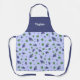 An apron with a pattern of grapes, green leaves and polka dots on a light purple background and a customisable first name above on a purple background. A lovely gift for a winemaker. It could also be used in a wine cellar or in a vineyard when you're working!