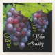 This lovely glass coaster is shown with a grapes art print with text that says Wine Country.