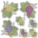 Grape icons woodcut illustration. Red, white and lilac. Contour sticker sheet.