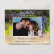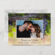 This beautiful Save the Date postcard features a background picture of ripe grapes hanging from a vine. This elegant card is perfect for wine lovers and for a wedding taking place at a winery. It includes a photo of the couple.
