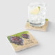 This lovely travertine stone coaster is shown with a grapes cluster art print with text that says Wine Country.