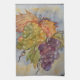 Watercolor design of green and purple grapes on a vineyard with light brown leaves