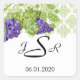 This fun design is called Grapevine Garden Wedding. The background is bright white. At the top there is an apple green damask pattern with a grapevine on the left side with purple grapes. Great for a garden or outdoor wedding. This set has invitations, save the date cards, response cards, thank you cards, table number tent cards, envelope seals, wine labels, binders, return address labels and many more day-of wedding stationery pieces, favours, and gifts available. Use the envelope seal stickers for any of your DIY gifts - these are available in both large and small sizes! All elements are printed on our high quality products, they do not include any real gold, jewels, embossing, or other textile elements. All designs are copyright Noteable Expressions, Inc. All rights reserved.