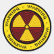 Graphic art radiation warning sticker in red, yellow and black.
