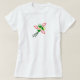 This basic white t-shirt has a clip art bouquet of flowers on the front and it has a relaxed fit for the female shape.