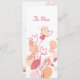 Double-sided simple modern petal confetti style floral wedding dinner reception menu in pretty fall colours of deep red and orange hues. Uniquely designed by Sarah Trett.