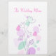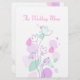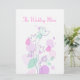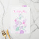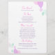 Double-sided simple modern petal confetti style floral wedding reception dinner menu in pretty pink, purple, plum and aqua green hues. Uniquely designed by Sarah Trett.