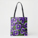 This tote bag features beautiful, graphic, vibrant, purple pansies that stand out amongst the green leaves. Carry your essentials in style and make a statement with this tote with the perfect blend of fashion and function!