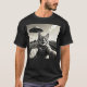 I give wanted to give this a 4 instead of a 5 because these Basic DARK T0shirts run unexpectedly SLIM or Narrow. Which is great if you do not have a potbelly, but I have a paunch. It isn't the shirt's fault that I've got a beer belly. The design and shirt itself is a quality cotton shirt. The color is more of a deep purple, but still a very pretty color. The Basic DARK T-shirts run a bit SLIMMER than the Basic Ts. The neck is a fraction narrower (or seems to be narrower) also. I'm a paunchy middle-aged woman and my neck is 12 inches (31cm) thick and the neckline fell about the same as in the photo of the man, and I had the desire to tug it a bit. So if you're a thick necked man or like loose shirts, be aware these are slimmer shirts. Once I get rid of my lockdown paunch it'll look great. The shirt washed well in cold water with no apparent bleeding. We don't have a dryer, so it hung dry. Did not shrink. Love the colors and the design. The design looks smaller on my shirt than it does on the model on-line. But still, it looks good on the shirt. The printing looks as it does on the model, just the size seems fractionally smaller. Washed garment in cold water, hung dry and design appeared unaffected.