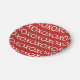 Valentine's Day Graphic hugs and kisses xoxo typography paper plate. Background colour and text can be customised.