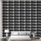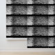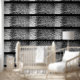 A serene bedroom where quiet breathes. The graphic wall pulses softly, a secret rhythm watching over rest.