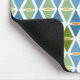 This mouse pad has a mid-century modern design of triangles whose bottoms have been curved, put in pairs with an oval between them. If you like the design but prefer different colours, message me.