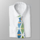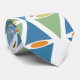 This necktie has a mid-century modern design of triangles whose bottoms have been curved, put in pairs with an oval between them.