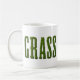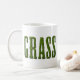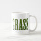 Coffee mug with the word GRASS. The text is made from a photo of grass to make it look like it's cut from sod. Nice design for lawn care or mowing companies.
