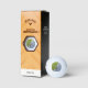 A 3 Pack of Callaway Golf Warbird Golf balls ,with a Picture of a GrassHopper ,sitting on a porch railing.