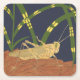 Grasshopper in Green Grass on Blue Background Square Paper Coaster