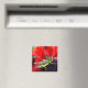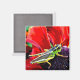 This brilliantly coloured magnet features a shiny green, yellow and black grasshopper perched on the purple centre of a flower with gorgeous red petals.
