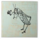 A cute and fun vintage grasshopper with top hat design with classic illustrated art and a mint green aged paper style background with music notes. Makes a great whimsical gift!
