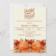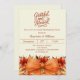 A soft cream, beige background colour. Decorated a large orange bow and fall flowers. Personalise and add the party details.