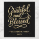 A black background. Beige, cream coloured text: Grateful and Blessed. Personalise and add your family name and year.