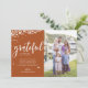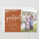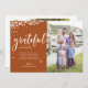Featuring "grateful" in a modern calligraphy script and falling autumn leaves. Room for one photo and a custom message on the front. Add another photo and your choice of customisation to the back. Trendy modern design for anyone on your mailing list.