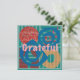 The Gratitude or Thank You signed original art note card is suitable for framing. It features modern geometrical shapes, bold colours, and a textured mixed-media design.