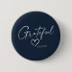 Attract that positive energy with a "Gratitude" button, featuring a unique custom design with "Grateful" in elegant handwritten script with a beautiful hand drawn heart and your personalised name. North sea blue and white or easily edit the primary colour as you like. Several sizes to choose from. A great gift for yourself and maybe someone else.