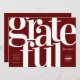 Send holiday greetings to customers and business clients with this modern, typographic business holiday card. It features a bold, typographic "thankful" greeting. Personalise this flat card with your custom business name, logo (light or white), message and year. Add a custom message and logo to the back of the card. Choose between a wide array of paper types. Select the rectangular shaped 5" x 7" card or add a dye cut border shape. Matching items are available.