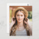 Elegant white script graduation thank you photo postcard includes an editable thank you message and return address on the back of the card, and one photo with calligraphy grateful script on the front. Send your thanks and gratitude to your graduation guests for their presence on your special day, with this classic photo postcard.