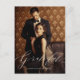 Elegant white script wedding thank you photo postcard includes an editable thank you message and return address on the back of the card, and one photo with calligraphy grateful script on the front. Send your thanks and gratitude to your wedding guests for their presence on your special day, with this classic photo postcard.