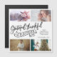 Family photo collage design Grateful, Thankful, Bless typography design Christmas holiday magnetic cards. Add four of your favourite family photos from the year, your greeting and family name.