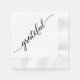Add this touch of modern sophistication to your napkins. The word "Grateful" in a simple script handwritten style font with long tails. A trendy and chic look. Try it for special holidays like Thanksgiving and Christmas.