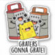 Graters Gonna Grate Funny Cheese Pun features a cute wedge of cheese together with his best pals chhese graters . Perfect Puns gift for family and friends who love cute cheese puns.