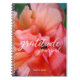 Commit to your gratitude practice with a beautiful notebook featuring an original photograph of a coral hibiscus bloom with large flower petals and the words "gratitude journal" in a white handwritten script font over it. Your name and the year appears in a simple white sans serif font near the bottom. Personalize it with your custom text in the sidebar.