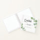 A white background colour. Decorated with elegant eucalyptus greenery sprigs. Add a name and text.