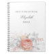 A chic white background with rose gold and white florals and silver foliage. Personalise and add your name, title and year. The name is written with an elegant hand lettered style script.