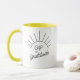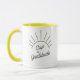 Trendy, stylish, funny coffee mug saying "Cup of Gratitude" in modern typography with whimsical sun illustration on the two-toned coffee mug. On the back is an easily customisable space for a personal message of Thanks. Perfect sweet birthday gift for your bestie, girlfriend, sister, or mum. Available in many more interior colours.