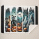 Four vertical panels unfold a haunting procession: a broom-wielding skeleton among jack-o'-lanterns and gravestones, a cloaked witch beneath twisted trees, a ghost drifting through moonlight and bats, and a long-haired spirit brooding beside tombstones marked “RIP” and “HACK.” Each scene is steeped in midnight blues and spectral mist, blending classic Halloween archetypes with atmospheric storytelling. It’s a visual incantation—where every figure is a whisper from the other side.