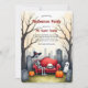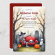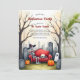 Cue the chills and giggles! This editable Halloween invitation showcases a playful cemetery scene: a witch-hat skeleton lounging on a scarlet sofa, a cute ghost sidekick, carved pumpkins, and weathered tombstones under bare autumn trees. It’s the perfect blend of creepy and charming for neighbourhood bashes, family parties, or adults-only costume nights