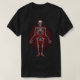 "Graveyard Whispers: Unleash your dark side with this sinister t-shirt, featuring an eerie image of an evil skeleton adorned with glowing red eyes and a chilling aura of blood. Embrace the macaber and make a bold statement that sends shivers down the spines of those who dare to glance your way.