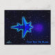 A simple, blue-toned 3D fractal image resembling a stylised spaceship superimposed on a starry background. Concentric rings (gravity waves?) emanate from the spacecraft into the seemingly empty vacuum of space. A light blue aura surrounds the spacecraft, perhaps the result faster-than-light travel. Add your own text.