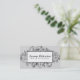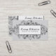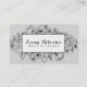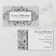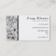 A chic design featuring a floral pattern drawn in black on a pale gray background with a white box in the centre for your name and profession.