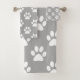 Gray and white paw prints bath towel set