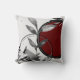 Stylish throw pillow features an artistic abstract design in a gray and burgundy wine color palette. An artistic abstract design features a watercolor leaf and a geometric circle composition with shades of gray with black and silver accents accents on a light background. This abstract composition is built on combinations of repeated circles and leaves, which are overlapped and interlaced to form an intricate and complex abstract pattern. The artistic design elements are layered and and interspersed to give perspective and depth; Zenlike design elements that compliment the lighter background.